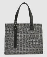 버클 호리즌탈 토트 백 - 카프스킨 & 애너그램 자카드